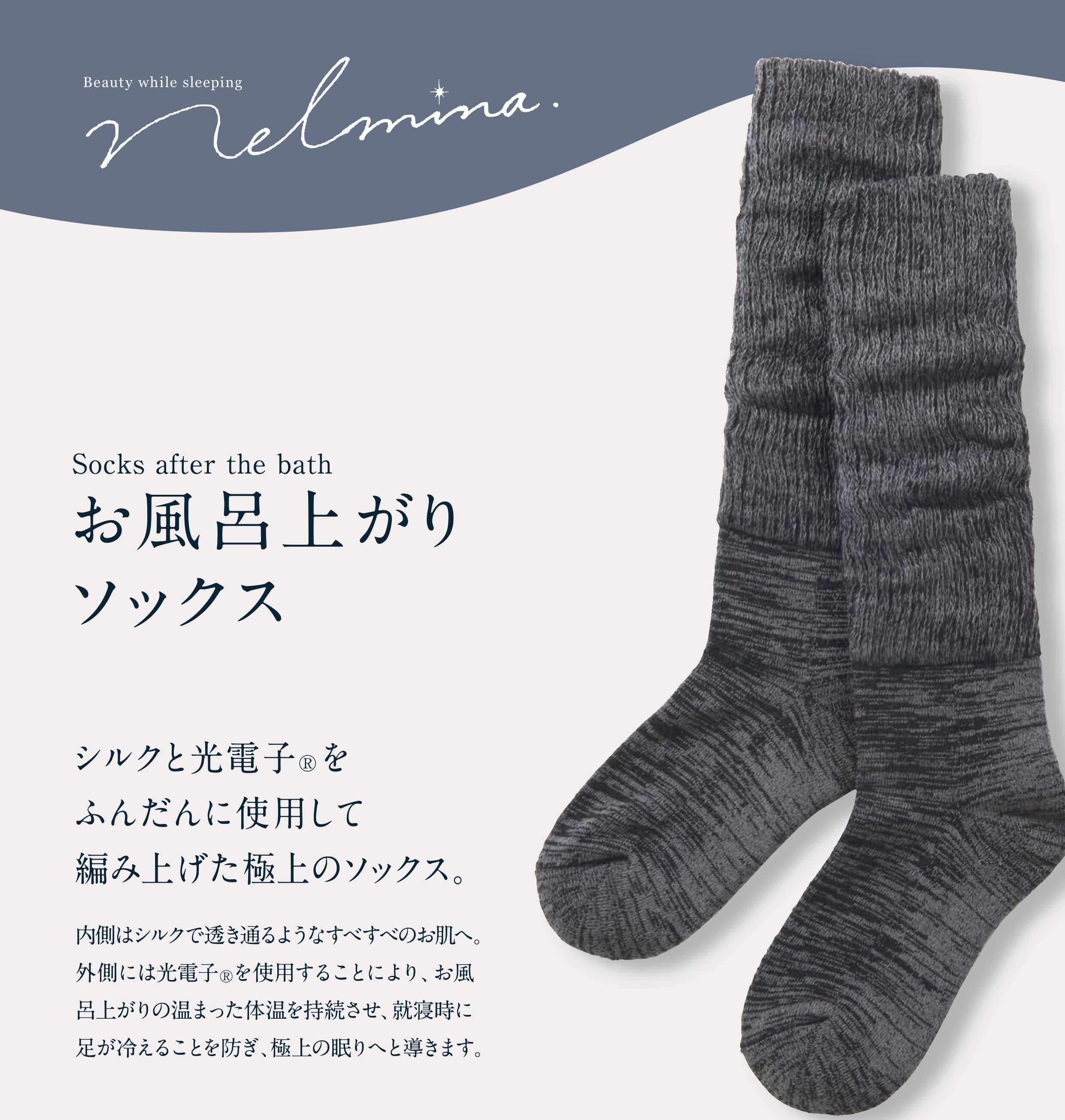 外側には光電子を使用しているので、お風呂上がりの温まった体温を長時間保温します。